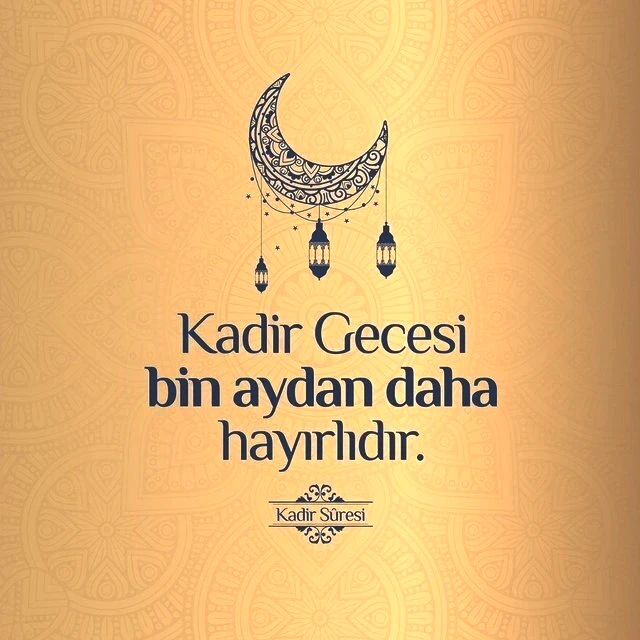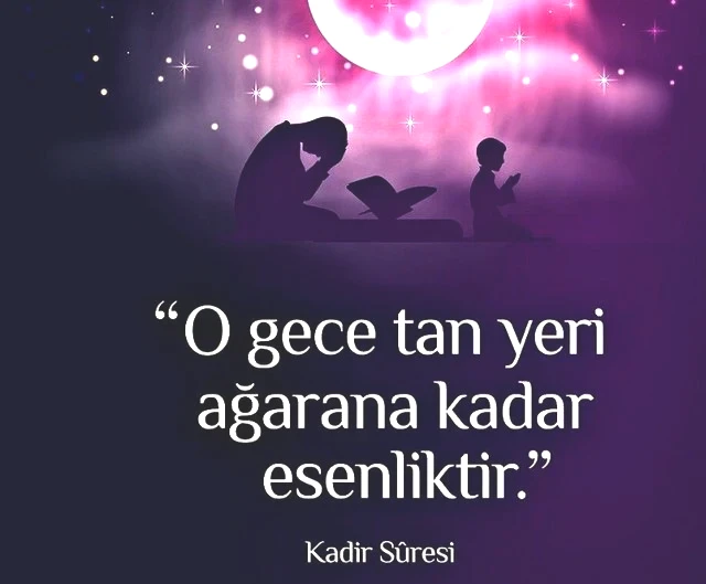 Kadir Gecesi, bin aydan daha hayırlıdır. O gece melekler ve ruh, Rablerinin izniyle her bir iş için iner dururlar. O gece tan yeri ağarıncaya kadar esenlik doludur. (Kadir Suresi 3-4-5. ayet)