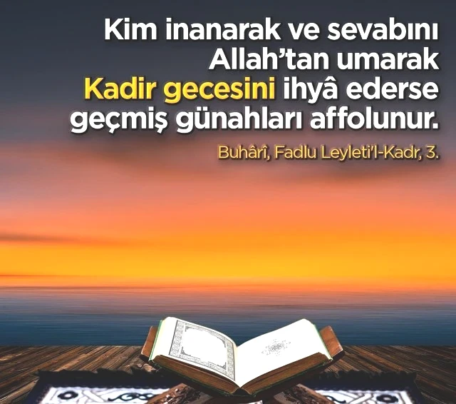 “Kadir gecesini, faziletine ve kutsiyetine inanarak ve sevabını yalnız Allah’tan bekleyerek ibâdet ve tâatle geçiren kimsenin geçmiş günâhları bağışlanır.” (Müslim, Müsâfirîn, 175)